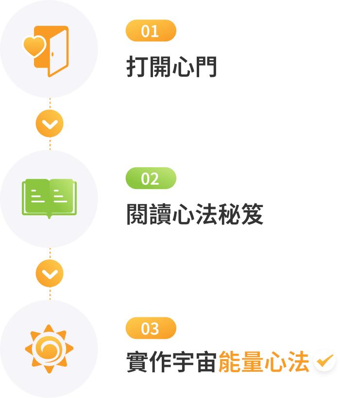宇宙能量心法實作步驟與心法秘笈順序不同,歡迎索取我們免費提供的宇宙能量心法學習引導信,跟著一步步正確實作心法!
